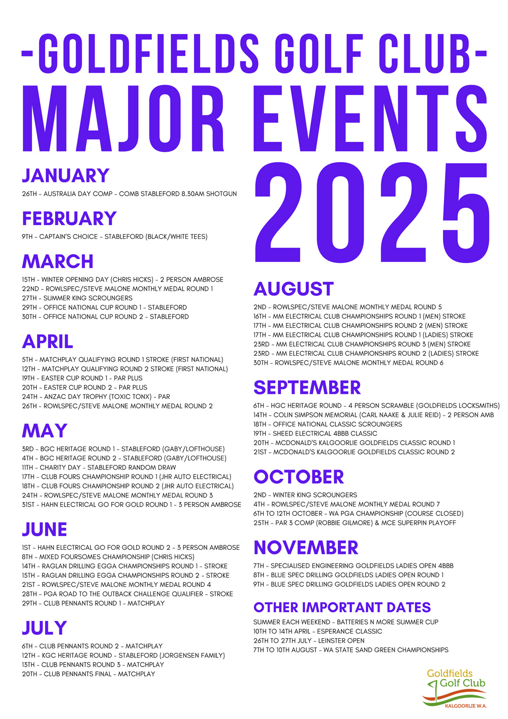 Hosting weekly club events and several open tournaments each year including the Western Australian PGA, the Goldfields Golf Club is progressing and building a reputation across the nation as “must play” to all golfers.“